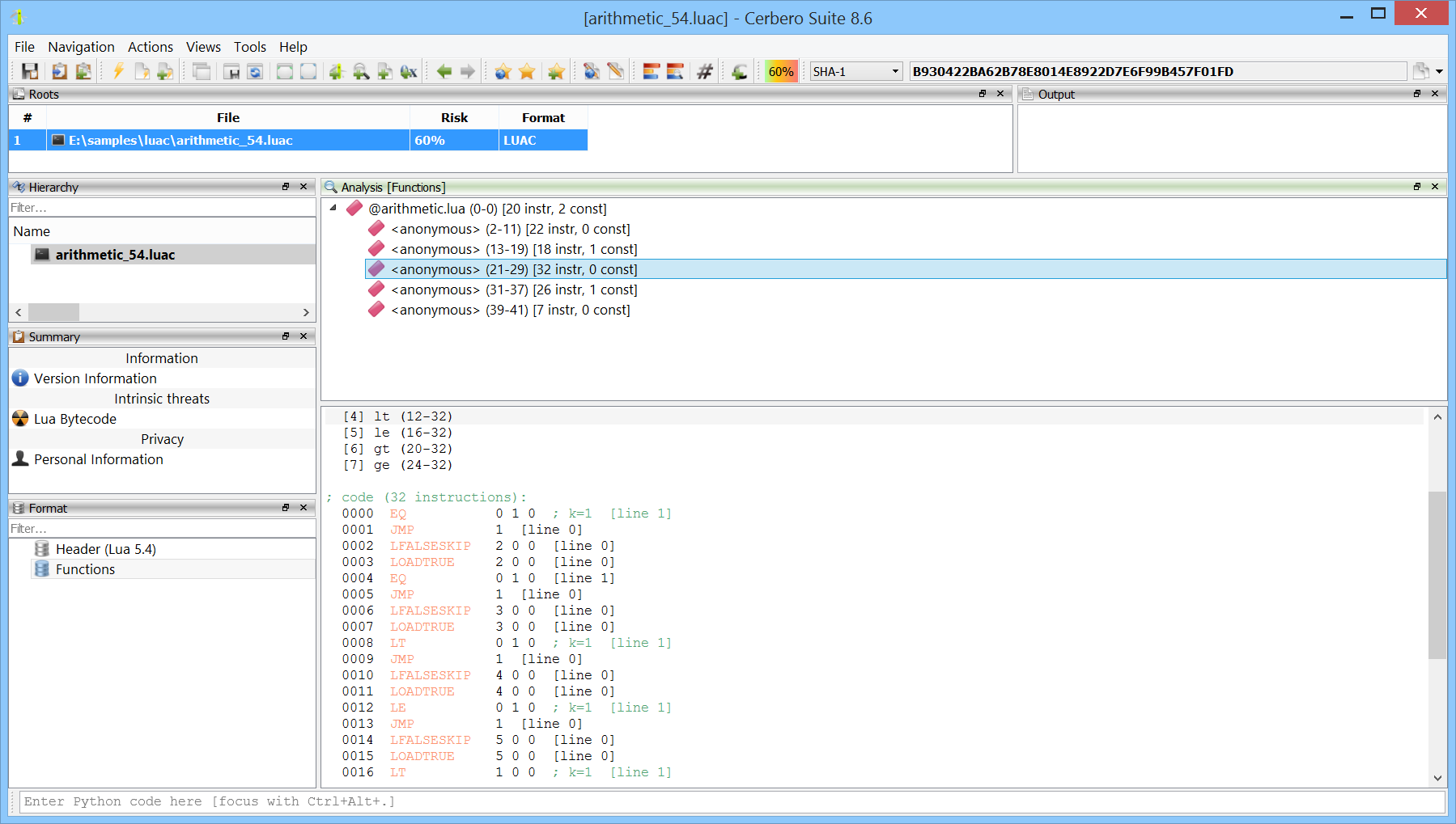 Support for Lua compiled bytecode (LUAC) files.